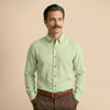 Crafted in a premium blend of soft Linen & Cotton, this airy shirt is an epitome of comfort, breathability & style. With thoughtful details, coconut buttons, button down collar, this soft bio washed shirt is an ideal choice for work wear & weekend brunches. Pair it with dark formal pants or with light color chinos. This Leaf Green color shirt is a confident choice for summer day events.