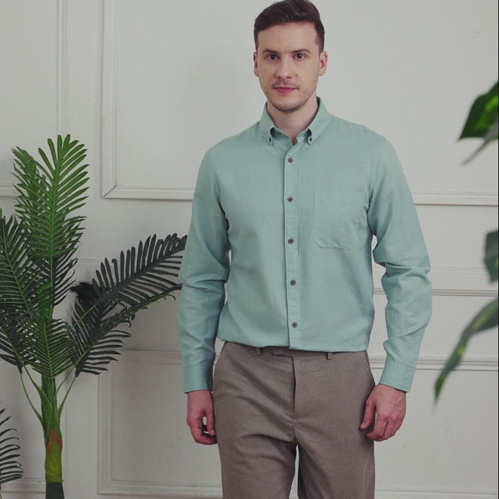 Beat the Heat in Effortless Style: Our Premium Linen Full-Sleeve Shirt. Experience the unparalleled comfort of our premium soft cotton-linen blend, designed to keep you cool and stylish all day long. This seaweed-colored shirt, with its luxurious woven texture, elevates your wardrobe with a touch of refined elegance. Pair it with formal trousers for a sharp office look, or chinos for a smart-casual vibe.