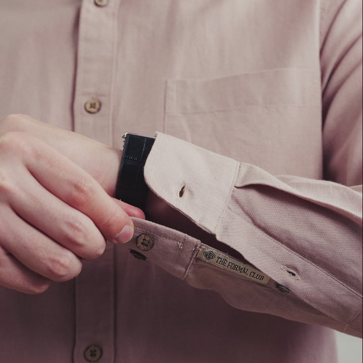 Beat the Heat in Effortless Style: Our Premium Linen Full-Sleeve Shirt. Experience the unparalleled comfort of our premium soft cotton-linen blend, designed to keep you cool and stylish all day long. This wood-rose-colored shirt, with its luxurious woven texture, elevates your wardrobe with a touch of refined elegance. Pair it with formal trousers for a sharp office look, or chinos for a smart-casual vibe.