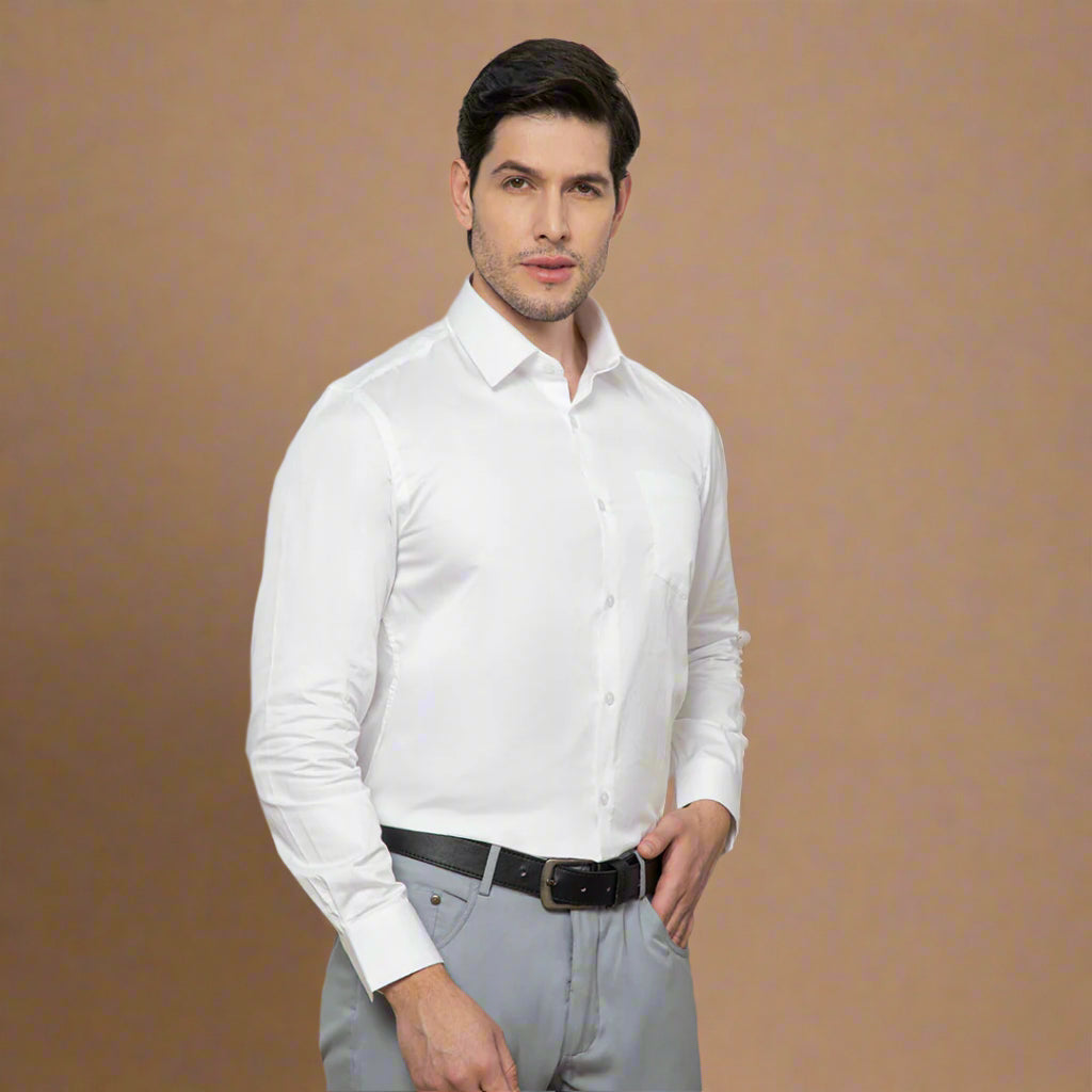 Launching Our All- Season Formal Wear In #Cambridge Long Sleeves. Crafted In Premium Soft Cotton, Its Lustrous Sateen Weave Is Intricately Woven In Solid Snow Color To Enhance The Luxurious Look. Impeccable Finishing & Minute Details Make It Perfect For A Special Occasion When Paired With Formal Trousers. Or Team With Smart Chinos For A Crisp Office Look.