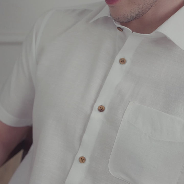 Crafted in premium soft Hemp-Tencel, it is an epitome of comfort, sustainability & style. Woven solid Snow color enhances the luxurious look. Impeccable finishing & minute details with soft Bio wash, make it perfect for work wear. Pair with formal trousers for office wear or team up with a smart pair of chinos for a chic casual look. By choosing this Hemp shirt, you are making a statement for a greener tomorrow. The coconut buttons add a sustainable value to this garment