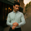 Made from high-quality cotton fabric , this shirt is built to last and can withstand the rigors of everyday wear. The Sage color with white stripes, adds a touch of elegance to your wardrobe, making it an All- Season versatile piece .